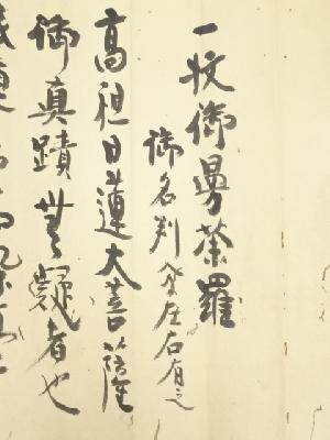 商品タイトルにつきまして、公的機関の正式な鑑定があるものではございませんので、「(伝)日蓮上人筆」とさせていただいております。