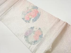 リサイクル 襷に丸文・花々模様織出し開き名古屋帯(額縁仕立て)