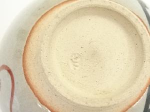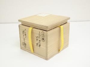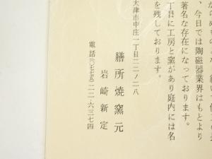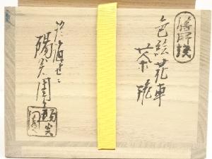 膳所焼 岩崎新定造 色絵花車茶碗(堀内家十二代兼中斎書付)(共箱)