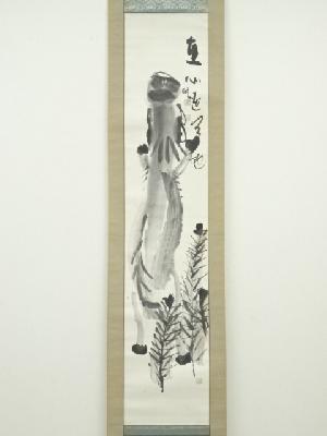 東大寺清水公照筆 画賛 肉筆紙本掛軸(共箱)