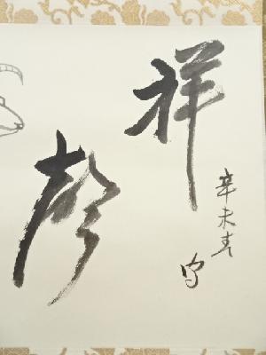 武者小路千家十四代不徹斎筆 「祥聲」画賛 肉筆紙本掛軸(共箱)