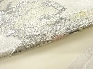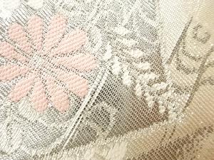 地紙に松・菊・花々模様織出し開き名古屋帯(額縁仕立て)