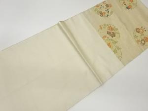 丸に花々模様織出し開き名古屋帯(額縁仕立て)