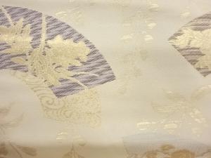 地紙に草花・流水模様織出し開き名古屋帯(額縁仕立て)