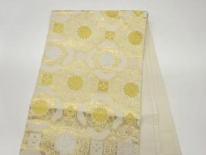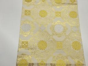 蜀江文に菊模様織出し開き名古屋帯(額縁仕立て)