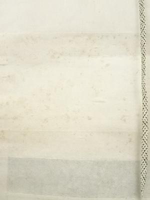 本紙・表具裏の全体に経年によるシミ・汚れ・折れなどの劣化があります。