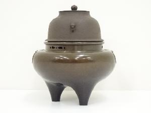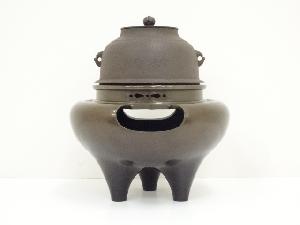釜師 橋本辰敏造 唐銅朝鮮風炉・竹地紋真形釜添(共箱)