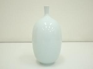 村島昭文造 青白磁菖蒲文壷(共箱)