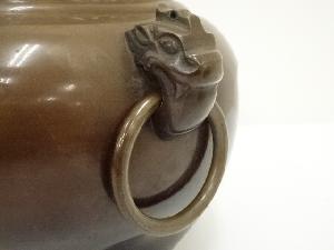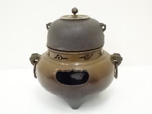 寛斎造 唐銅鬼面風炉(佐藤清光釜添)(電熱器・前瓦・底瓦付)(共箱)