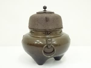 釜師 人間国宝 高橋敬典・風炉師 金谷浄雲造 唐銅鬼面風炉・平丸釜添(共箱)