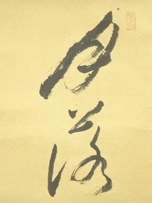 昭和癸酉(1933年) 大徳寺488世 円山伝衣筆 「月落松根蘿屋前」一行書 肉筆紙本掛軸(共箱)