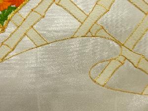 リサイクル 光悦垣に草花模様刺繍開き名古屋帯(額縁仕立て)