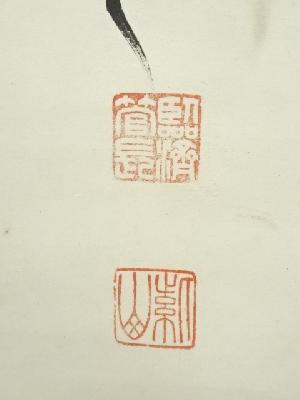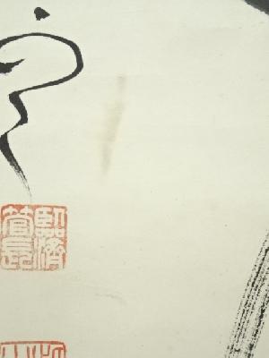 本紙・表具ともに表裏両面全体に若干シミがあり、本紙に巻きジワによる折れがあります。