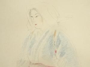 絵画 作家物 大原女 紙に素描水彩 肉筆額装