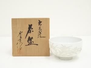 出石焼 山本秀壷造 白磁花彫茶碗(共箱)