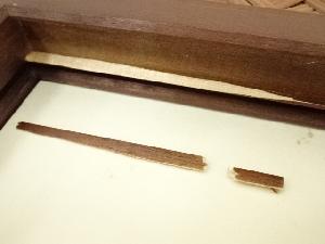 木枠のところどころに当たりがあり、差し込み部分が破損しています。