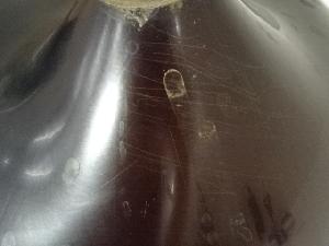 釜:ところどころに錆があります。また、蓋に汚れと変色があります。