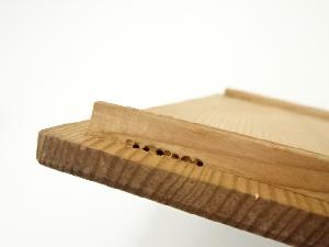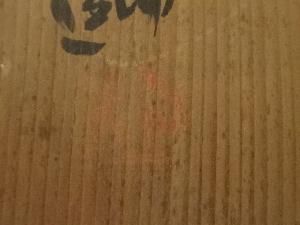 木箱の角に傷があり、蓋の桟に浮きと虫食いがあります。
