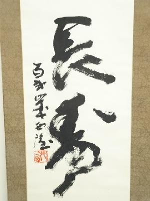 北村西望筆 「洗心長寿」一行書 肉筆紙本掛軸(共箱)