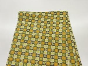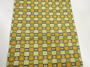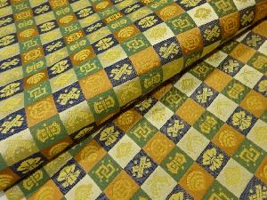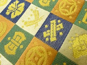 市松に宝尽くし模様織出し開き名古屋帯(額縁仕立て)
