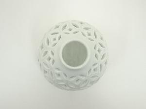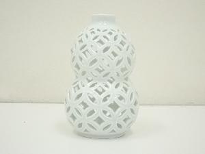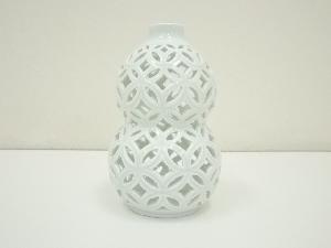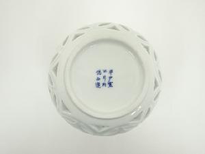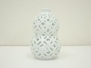 平戸焼 今村悦山造 白磁七宝透瓢杓立(堀内家十二代 宗完 兼中斎書付)(共箱)
