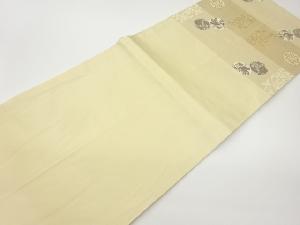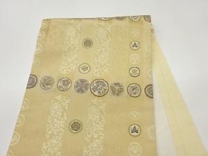 長谷川織物製 縞に丸・草花模様開き名古屋帯(額縁仕立て)