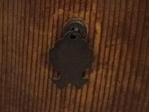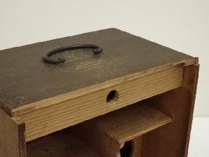 木箱:全体に経年の汚れがあり、上部に破損があります。