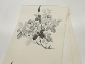 作家物 塩瀬手描き花葉模様開き名古屋帯(額縁仕立て)