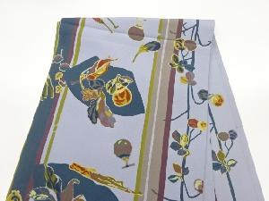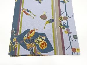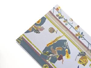 塩瀬金彩地紙に野菜模様開き名古屋帯(額縁仕立て)