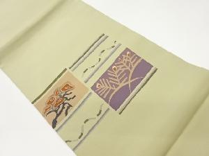 塩瀬変わり横段に枝葉模様開き名古屋帯(額縁仕立て)