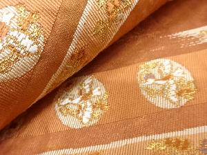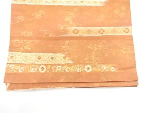 変わり横段に草花・花喰い鳥模様織り出し 開き名古屋帯(額縁仕立て)