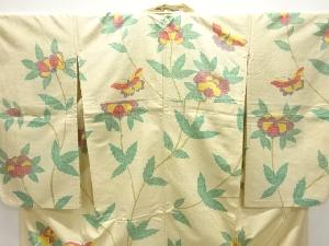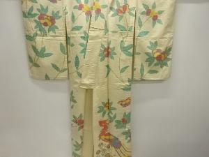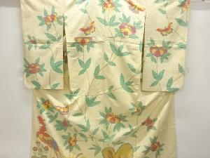 大正ロマン 型染花鳥模様手織り紬単衣着物