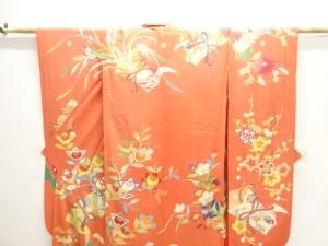 大正ロマン 錦紗熨斗の橘・菊模様刺繍五ツ紋振袖(長襦袢付き)