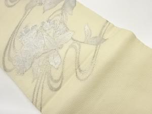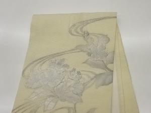 絽綴れ流水に花葉模様織出し開き名古屋帯(額縁仕立て)