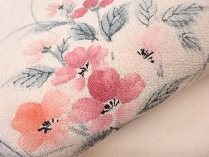 作家物 手描き草花模様開き名古屋帯(額縁仕立て)