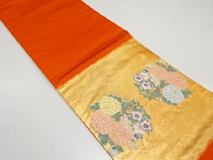 丸紋に秋草模様織り出し開き名古屋帯(額縁仕立て)