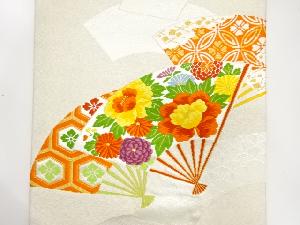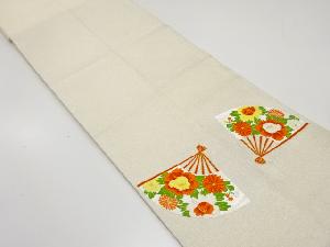 扇面に古典柄・花模様織り出し開き名古屋帯(額縁仕立て)
