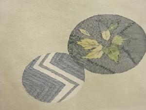 丸文に葉模様織出し開き名古屋帯(額縁仕立て)