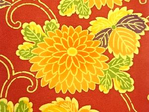 縮緬地型染菊唐草模様開き名古屋帯(額縁仕立て)