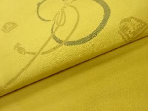 手織り紬瓢箪に将棋駒模様織出し開き名古屋帯(額縁仕立て)