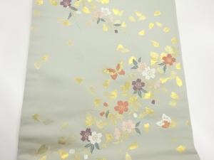 枝垂れ桜に蝶模様織出し開き名古屋帯(額縁仕立て)
