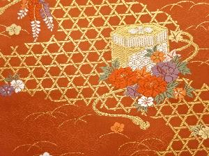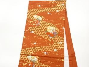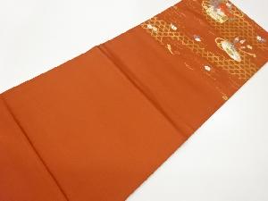 貝桶に藤・牡丹模様織出し開き名古屋帯(額縁仕立て)