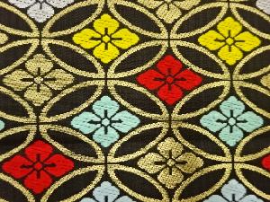 花菱七宝模様織出し開き名古屋帯(額縁仕立て)