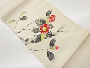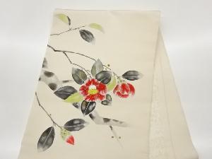 塩瀬金彩手描き椿に枝葉模様開き名古屋帯(額縁仕立て)