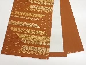 横段に花々・華紋模様織出し開き名古屋帯(額縁仕立て)