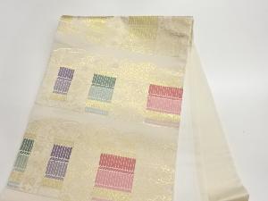 鎧・花唐草・鳳凰模様織出し開き名古屋帯(額縁仕立て)