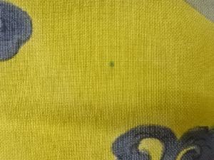 垂れ先から22センチに1ヶ所と帯幅柄部分に2ヶ所色移りが有ります。