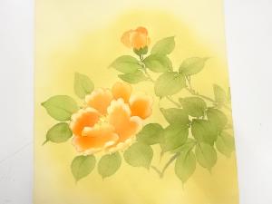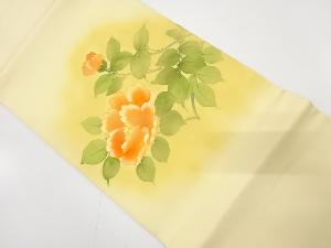 アンティーク 塩瀬 手描き 椿模様開き名古屋帯(額縁仕立て)