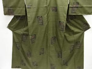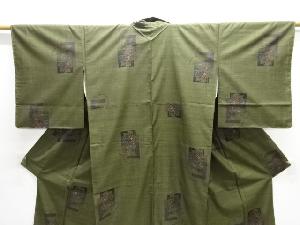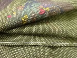 未使用品 仕立て上がり 色紙に草花模様織り出し本場泥大島紬着物(7マルキ)