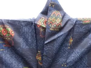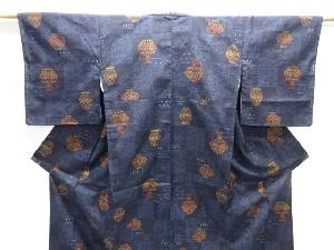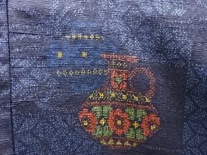 壷に花模様織り出し十日町紬着物
